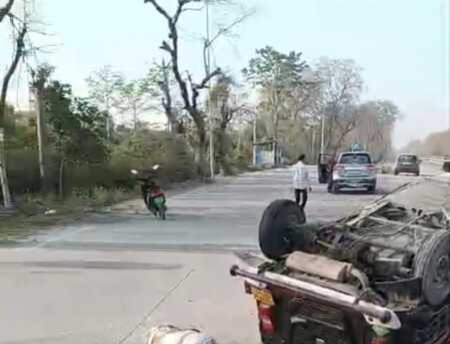 राष्ट्रीय राजमार्ग पर बने बेतरतीब कट में वाहनों की जबरदस्त टक्कर, एक महिला की मौत, आठ लोग गंभीर रूप से घायल