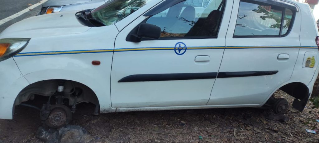 लो जी..एक पहिए में खड़ी कर गये टैक्सी को शातिर चोर