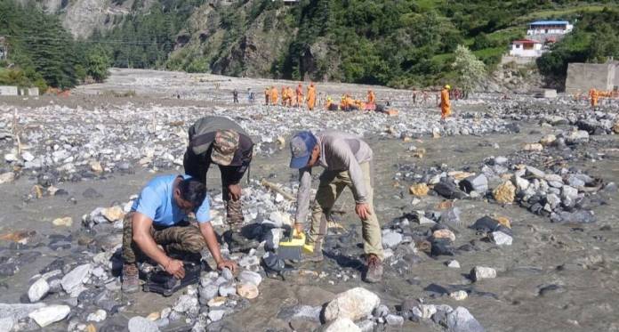 सेना व तिरंगा माउंटेन रेस्क्यू टीम कर रही अत्याधुनिक मशीनों की मदद से मलबे में लापता लोगों की तलाश