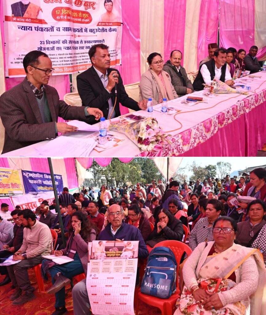 सीएन, ज्योलीकोट/हल्द्वानी। प्रदेश सरकार की जनकल्याणकारी योजनाओं को आम जन तक पंहुचाने के उद्देश्य से जन-जन की सरकार जन-जन के द्वार कार्यक्रम के तहत बुधवार को ज्योलीकोट रामलीला मैदान में बहुउददेशीय शिविर सम्पन्न हुआ। नवागन्तुक मुख्य विकास अधिकारी अरविन्द कुमार पाण्डे ने शिविर में लोगों की समस्याओं को सुना और मौके पर निस्तारण किया। शिविर में सैकड़ों लोगों को सरकार द्वारा संचालित योजनाओं से लाभान्वित किया गया। बहुउददेशीय शिविर में 221 लोगों ने समस्याएं दर्ज की और मौके पर अधिकांश शिकायतों का समाधान किया गया। मुख्य विकास अधिकारी अरविन्द कुमार पाण्डे ने सभी अधिकारियों को निर्देश दिये कि आम जनता की जो भी समस्यायें हैं उनका समाधान कार्यालय स्तर पर ही किया जाय। जिससे कि आम लोगों को जिला मुख्यालय तक ना भटकना पडे। उन्होंने अधिकारियों से कहा शिविर में उनके विभाग से संबंधित जो भी समस्यायें लोगों द्वारा दर्ज की गई है उन समस्याओं का समय पर निस्तारण करते हुए की गई कार्यवाही से अवगत करायेंगे। शिविर में मुख्य विकास अधिकारी ने कहा कि सरकार द्वारा जो भी योजनायें आमजनमानस के लिए संचालित है उन योजनाओं का लाभ अन्तिम छोर के व्यक्ति तक पंहुचाना सभी अधिकारियों की जिम्मेदारी है। शिविर में स्थानीय लोगों द्वारा क्षेत्र में समय समय पर आधार कैम्प लगाये जाने की मांग रखी, जिस पर मुख्य विकास अधिकारी ने जिला विकास अधिकारी को मांह में एक दिन चिन्हित कर आधार कैम्प लगाने के निर्देश दिये ताकि पर्वतीय दुरस्थ गांव के लोगों के आधार कार्ड मे संशोधन एवं नये आधार कार्ड बनाये जा सकें। शिविर में सड़ियाताल के निवासियों ने बाहरी व्यक्तियों द्वारा भूमि क्रय कर उनकी मूलभूत सुविधाओं सडक, पेयजल आदि पर कब्जा किए जाने की शिकायत की गई। जिस पर मुख्य विकास अधिकारी ने राजस्व विभाग के अधिकारियों को उक्त क्षेत्रों की पैमाईश कर समस्या का समाधान करने के निर्देश दिये। क्षेत्र के लोगों ने जल जीवन मिशन के अन्तर्गत निर्मित पेयजल पाईप लाईन से पानी न आने की शिकायत रखी, जिस पर मुख्य विकास अधिकारी ने जेजेएम के अधिकारियों को निर्देश दिये कि जिन गावों में पेयजल लाइनों में पानी नही आ रहा है उनमें एक सप्ताह के भीतर पानी सुचारू करने के निर्देश दिए। शिविर में विभिन्न विभागों द्वारा स्टॉल लगाकर जनकल्याणकारी योजनाओं से लाभान्वित किया गया। शिविर में स्वास्थ्य विभाग द्वारा 142 लोगों की जांच एवं ओषधि वितरित की गई। समाज कल्याण विभाग द्वारा 40 लाभार्थियों को वृद्वा, दिव्यांग, वृद्धावस्था पेंशन के आवेदन वितरित किए गये। कृषि विभाग द्वारा कृषि यंत्र एवं रसायन,बीज वितरित किए गए। शिविर में बाल विकास विभाग द्वारा 10 लोगों को महालक्ष्मी कि