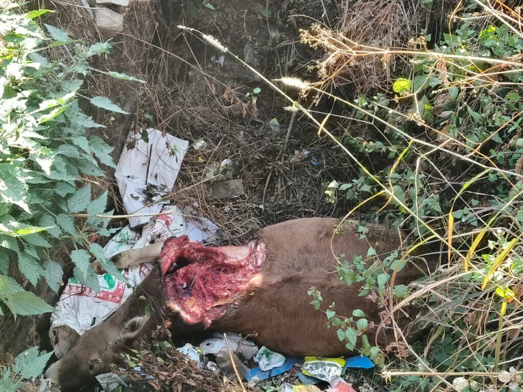 भूमियाधार में बाघ का आतंक, सरेशाम गाय को बनाया निवाला, गांव में दहशत