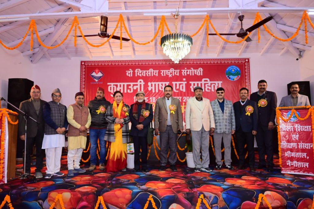 सीएन, नैनीताल। जिला शिक्षा एवं प्रशिक्षण संस्थान (डायट) भीमताल में 18 और 19 दिसंबर,2025 को दो दिवसीय राष्ट्रीय सम्मेलन का शुभारंभ हुआ। सम्मेलन के मुख्य अतिथि सोबन सिंह जीना विश्वविद्यालय,अल्मोड़ा के कुलपति प्रो. सतपाल सिंह बिष्ट रहे। सम्मेलन के उद्घाटन सत्र में मुख्य वक्ता प्रो. देव सिंह पोखरिया, सत्र अध्यक्ष पूर्व कुलपति प्रो. जगत सिंह बिष्ट और विशिष्ट अतिथि विधायक राम सिंह कैड़ा रहे। संस्थान के प्राचार्य सुरेश चंद्र आर्य ने स्वागत किया। इस दो दिवसीय सम्मेलन में कुमाऊनी भाषा के विद्वान भागीदारी करेंगे। साथ ही विश्वविद्यालय के कुलसचिव डा. देवेंद्र सिंह बिष्ट समापन सत्र में बतौर विशिष्ट अतिथि रूप में भागीदारी करेंगे।