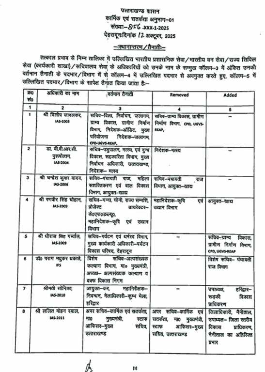 44 आईएएस, आईएफएस व पीसीएस अफसरों के तबादले, ललित मोहन रयाल को नैनीताल का नया डीएम बनाया