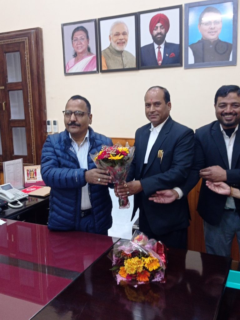 सीएन, नैनीताल। जिला बार एशोसिएशन नैनीताल के पदाधिकारियों ने बुधवार को नवागंतुक जिलाधिकारी ललित मोहन रयाल से शिष्टाचार भेंट की। पदाधिकारियों ने पुष्प गुच्छ भेंट कर उनका स्वागत किया। इस दौरान बार पदाधिकारियों ने नैनीताल मुख्यालय में सयुंक्त रेवेन्यू कोर्ट स्थापित करने की मांग की। शिष्टमंडल का कहना था कि विभिन्न तहसीलों में रेवेन्यू मामलों की पैरवी में अधिवक्ताओं को परेशानी का सामना करना पड़ता है। डीएम ने उचित कार्रवाई का आश्वासन दिया। शिष्टमंडल में बार के अध्यक्ष भगवत प्रसाद, महासचिव दीपक रूवाली, वरिष्ठ सदस्य प्रीति साह, निर्मल कुमार, जमीर अहमद मौजूद रहे।