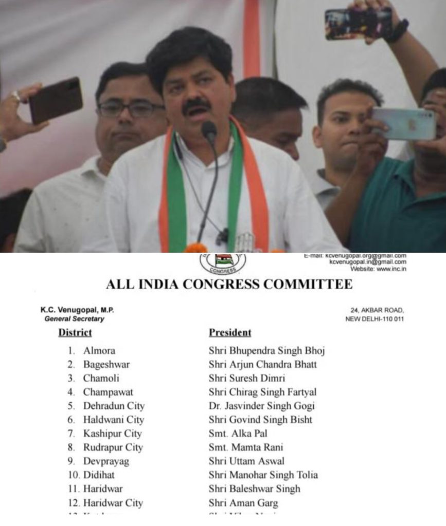 सीएन, देहरादून। उत्तराखंड कांग्रेस में संगठनात्मक फेरबदल करते हुए ऑल इंडिया कांग्रेस कमेटी (एआईसीसी) ने गणेश गोदियाल को एक बार फिर प्रदेश कांग्रेस कमेटी (पीसीसी) का अध्यक्ष नियुक्त किया है। गोदियाल 16 नवंबर को कार्यभार ग्रहण करेंगे। जबकि आगामी 30 दिन में पूरी कार्यकारिणी आकार लेगी। एआईसीसी के महासचिव केसी वेणुगोपाल ने मंगलवार देर रात इस संबंध में पत्र जारी किया। इसके साथ ही जिलाध्यक्षों के नामों की भी घोषणा की गई है। गणेश गोदियाल इससे पहले भी अगस्त 2021 से लेकर मार्च 2022 तक उत्तराखंड कांग्रेस अध्यक्ष रह चुके हैं। उस दौरान उन्होंने विधानसभा चुनाव 2022 में पार्टी की कमान संभाली थी। पार्टी सूत्रों के अनुसार, उनकी नियुक्ति पर कांग्रेस महासचिव प्रियंका गांधी वाड्रा की विशेष सहमति मानी जा रही है। उत्तराखंड में कांग्रेस के नए सिरे से पुनर्गठन को आगामी नगर निकाय और विधानसभा चुनावों की तैयारी से जोड़कर देखा जा रहा है। नवनियुक्त अध्यक्ष गणेश गोदियाल के साथ प्रीतम सिंह और हरक सिंह रावत तीनों अनुभवी नेता हैं। उनके नेतृत्व में पार्टी राज्य में फिर से सक्रियता बढ़ाने की रणनीति पर काम करेगी।उत्तराखंड प्रदेश कांग्रेस कमेटी की दो प्रमुख समितियों का गठन भी किया गया है। प्रीतम सिंह को प्रचार समिति और हरक सिंह रावत को चुनाव प्रबंधन समिति की कमान सौंपी गई है। दोनों को विधानसभा चुनावों से पहले संगठन को सक्रिय करने की रणनीतिक भूमिका निभाने की जिम्मेदारी दी गई है। प्रदेश अध्यक्ष का दायित्व संभाल रहे करन माहरा को कांग्रेस कार्यसमिति में विशेष आमंत्रित सदस्य बनाया गया है। पार्टी ने उनके कार्यकाल के दौरान हुए संगठनात्मक प्रयासों की सराहना की है।