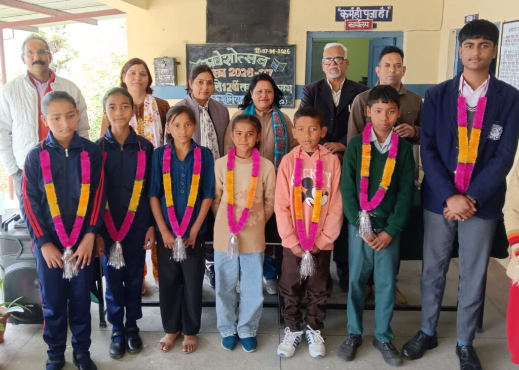 सीएन, ज्योलीकोट/नैनीताल। राजकीय इंटर कालेज भूमियाधार में नए सत्र का भव्य शुभारंभ, नए छात्रों का तिलक लगाकर स्वागत किया गया। आज नए शैक्षणिक सत्र 2026-27 का उत्साहपूर्वक प्रारंभ हुआ। विद्यालय परिसर को प्रवेशोत्सव पर रंग-बिरंगे गुब्बारों और फूलों से सजाया गया था। प्रधानाचार्य त्रिभुवन आर्य और वरिष्ठ शिक्षकों ने द्वार पर ही नए छात्रों का स्वागत तिलक लगाकर और पुष्प वर्षा के साथ किया। प्रधानाचार्य ने अपने संबोधन में कहा, “नए छात्र हमारे विद्यालय परिवार का अभिन्न अंग हैं। हम न केवल उन्हें उत्कृष्ट शिक्षा प्रदान करने के लिए प्रतिबद्ध हैं, बल्कि उनके सर्वांगीण विकास के लिए एक सुरक्षित और प्रेरणादायक वातावरण भी सुनिश्चित करेंगे। आज हुए प्रवेश उत्सव कार्यक्रम में शिक्षक प्रकाश चंद्र, दीप चन्द्र हरबोला, निहारिका आर्या, प्रियंक पांडेय, पूजा बिष्ट सहित बड़ी संख्या में अभिभावक उपस्थित थे।