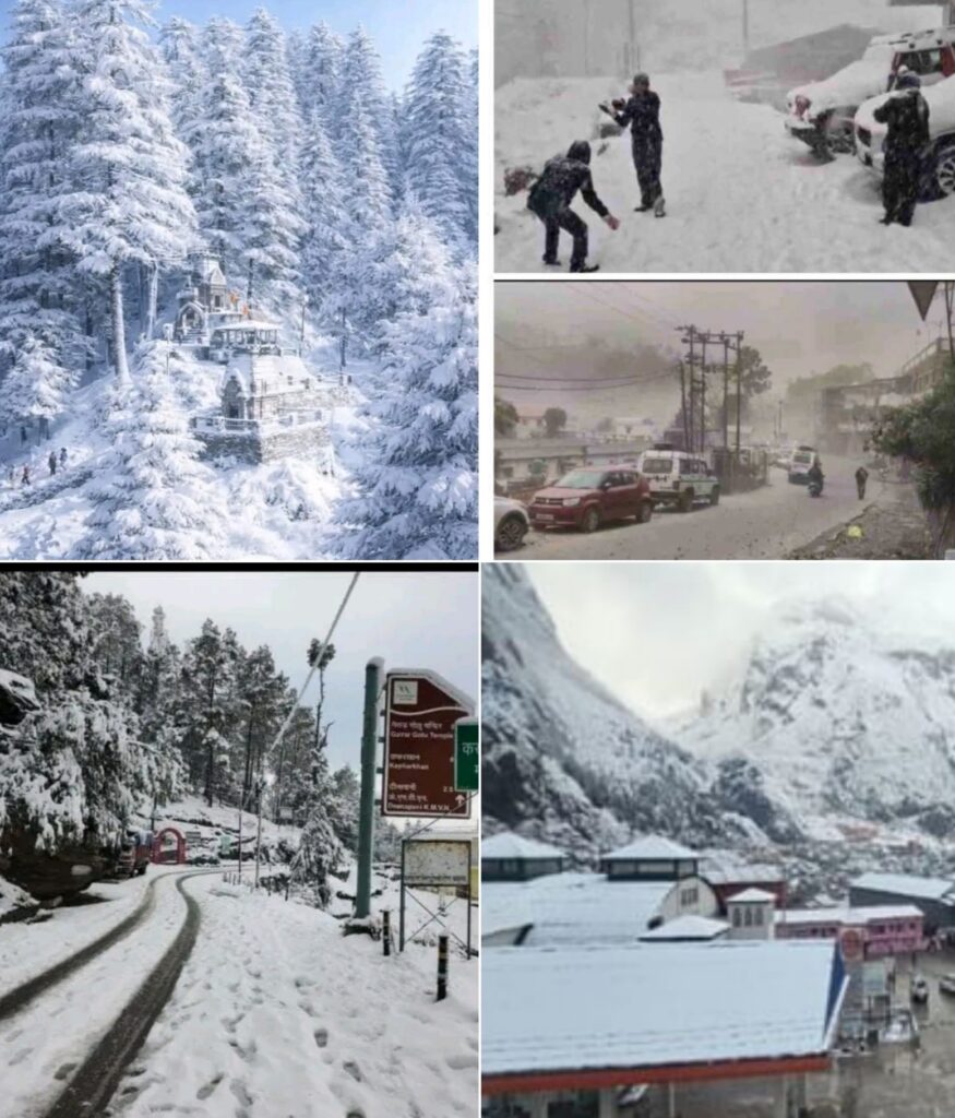 सीएन, नैनीताल। उत्तराखंड में मौसम परिवर्तन हुआ है पूरे प्रदेश में जगह-जगह बारिश के साथ-साथ पहाड़ों पर बर्फबारी भी हो रही है नैनीताल में मौसम की पहली बर्फबारी ने नगर को सफेद चादर से ढक दिया है। मौसम विभाग ने 24 और 25 (शनिवार और रविवार) को इस क्षेत्र में तेज बरसात और बर्फबारी की चेतावनी दी थी। शीतकाल में विंटर रेन तो नहीं हुई सीधे बर्फबारी दिखी। नैनीताल के ऊपर आसमान में दो दिनों से लगातार बादलों का कब्जा दिखा। बीते दिन हल्की बरसात के बाद उच्च पर्वतीय श्रृंखलाओं में ओलावृष्टि के साथ ही बर्फबारी होने लगी। नैनीताल के नयना पीक, स्नोव्यू, टिफिन टॉप, किलबरी, सात नंबर, बिड़ला चुंगी, लड़ियाकांटा समेत अन्य ऊंचे क्षेत्रों में मौसम की पहली बर्फबारी देखने को मिली। मॉल रोड में बरसात और हल्के फुल्के ओले देखे गए। इसके अलावा नैनीताल जिले के मुक्कतेश्वर, रामगढ़, गागर, सहित ऊंचाई वाले इलाकों में बर्फबारी और बारिश हुई है। यह खेती किसानों के लिए मुफीद मानी जा रही है। बर्फबारी से स्थानीय लोगों के साथ पर्यटक भी बेहद खुश नजर आए। बरसात, ओलावृष्टि और बर्फबारी के चलते तापमान में भी भारी गिरावट महसूस की जा रही है।नैनीताल और आसपास के पहाड़ी क्षेत्रों में इस वर्ष शीतकालीन बरसात नहीं हुई है, जबकी सीधे बर्फबारी देखने को मिल रही है। शनिवार को नैनीताल सहित अन्य स्थानों में हुई बर्फबारी के बाद पर्यटकों का पहाड़ों की ओर आने का सिलसिला जारी हो गया है। शनिवार को नैनीताल में मौसम सामान्य रहा। आसमान में हालांकि बादल छाये थे तो कभी धूप भी छलक रही थी। नैनीताल पहुंचे सैलानियों ने मौसम का भरपूर आनंद लिया और जमकर फोटोग्राफी की। वीकेंड होने पर सैलानियों का नैनीताल पहुंचना जारी है।